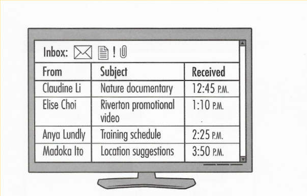 63. Look at the graphic. Whose e-mail does the woman mention?